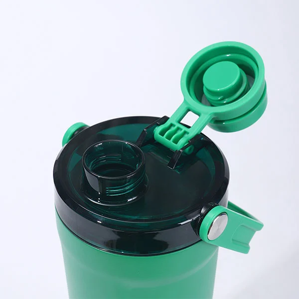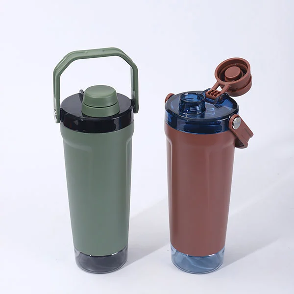 Dno boce za šejkere je dizajnirano sa pretincem za odlaganje napravljenim od PC materijala, koji može držati dnevni proteinski prah, listove čaja, lijekove, itd. Ovaj dizajn otporan na curenje je dizajniran da se odvoji od nehrđajućeg čelika na dnu