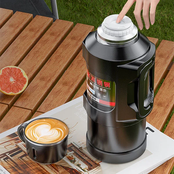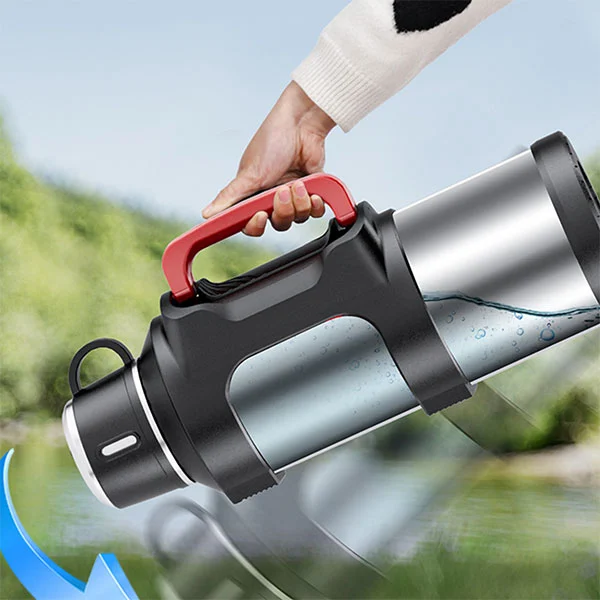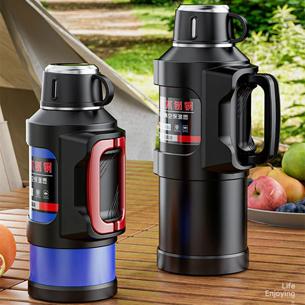 Ovo je termos tikvica velikog kapaciteta sa maksimalnim kapacitetom od 6 litara. Jedna kanta vode ekvivalentna je 12 običnih mineralnih boca za vodu, što je dovoljno da se unose vode za jednu osobu tri dana tokom putovanja.