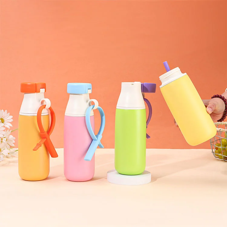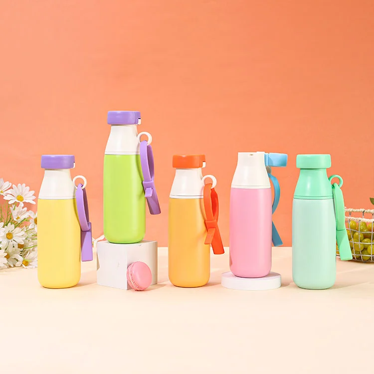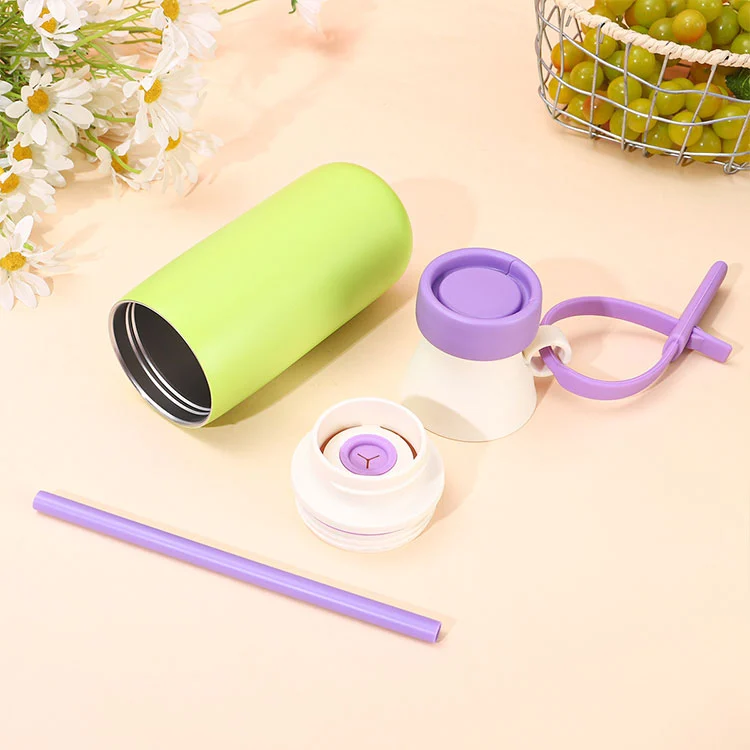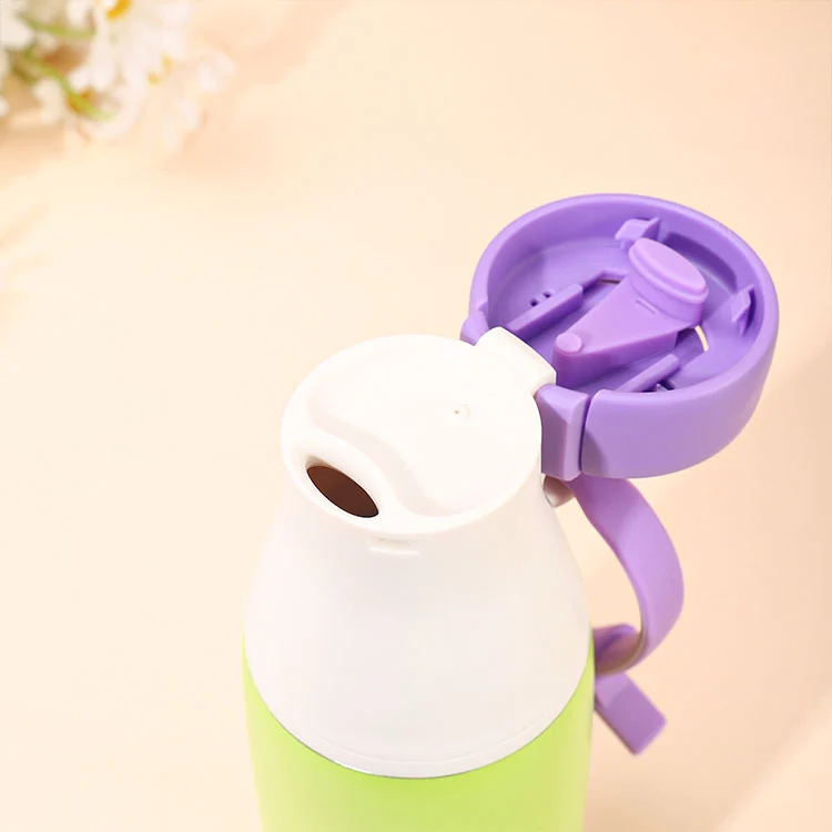 Boca od nehrđajućeg čelika 304 s vakuumskom izolacijom pripada bocama s dopaminskim mlijekom, s kružnim poklopcem koji se lako otvara povlačenjem i zaključava samo pritiskom kako bi se spriječilo slučajno otvaranje čepa boce.
